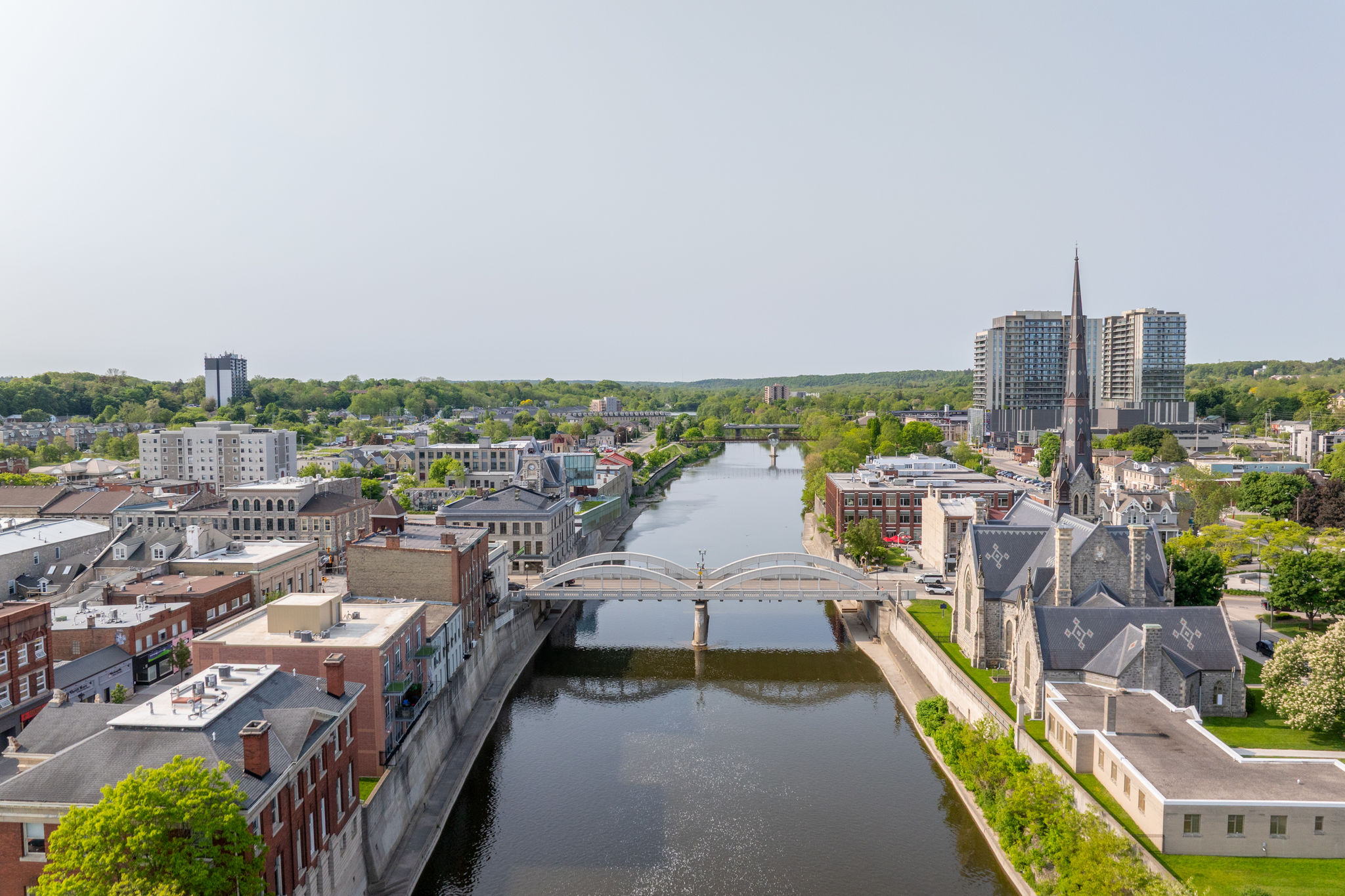 Welcome to the largest and most exclusive penthouse in the Gaslight District—a breathtaking 2,300 sq. ft. residence created by seamlessly combining two expansive units. Spanning the entire side of the building, this one-of-a-kind three-bedroom, three-bathroom home offers unparalleled luxury with panoramic views of historic downtown Cambridge and the Grand River.