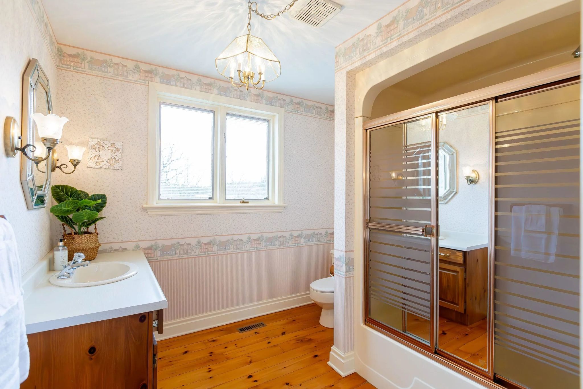 Open the door and discover an interior that seamlessly blends classic features with contemporary convenience. The heart of the home is the recently renovated country kitchen, boasting a spacious center island, ample storage, and a cozy breakfast nook with a deck access point through a charming garden door. A massive window overlooks the backyard oasis, bathing the space in natural light and creating a serene environment for culinary creations and gatherings. Entertain seamlessly with a tastefully decorated living room and dining room, where a crackling gas fireplace enhances the inviting ambiance.