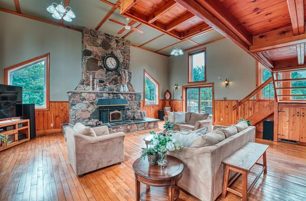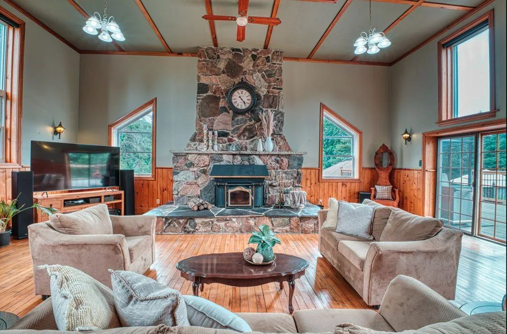 The floor plan offers 4700 sq. ft. of generous living space on 4-levels for family and friends to enjoy. The main level includes a massive Great Room with vaulted ceilings, plenty of large windows to flood the space with natural light and a huge fieldstone fireplace with wood insert to enjoy those cool nights in the fall and winter.