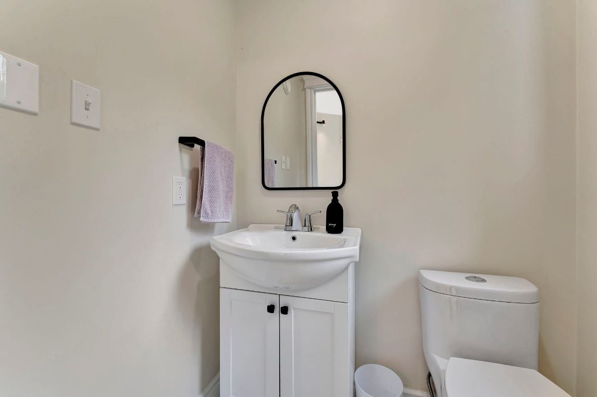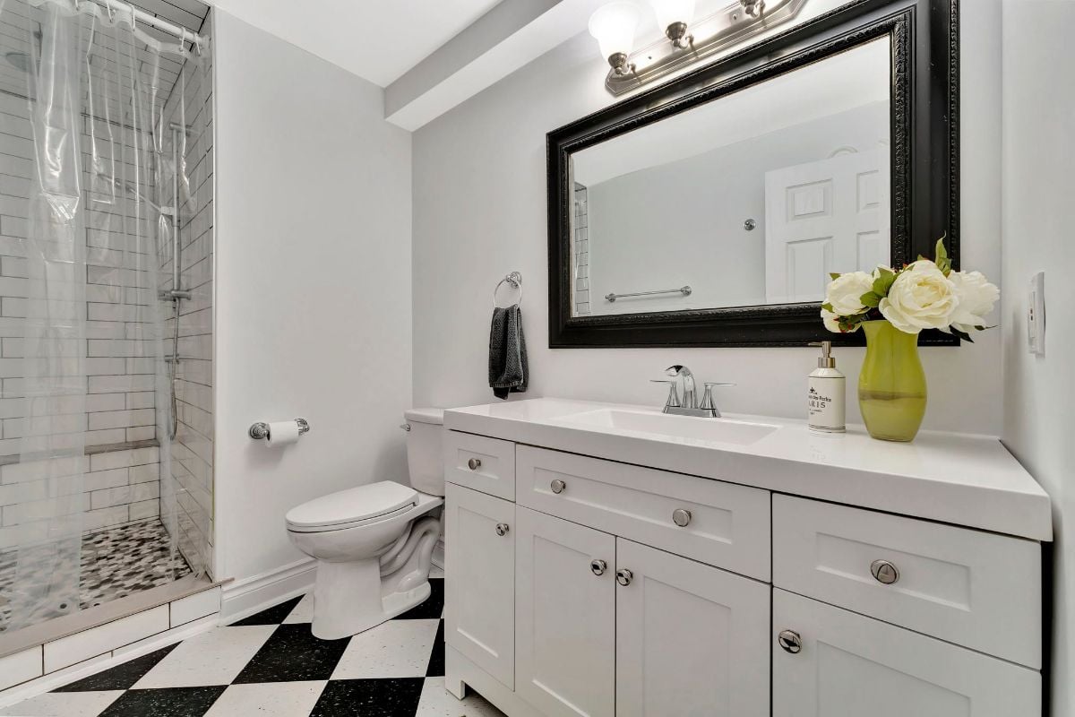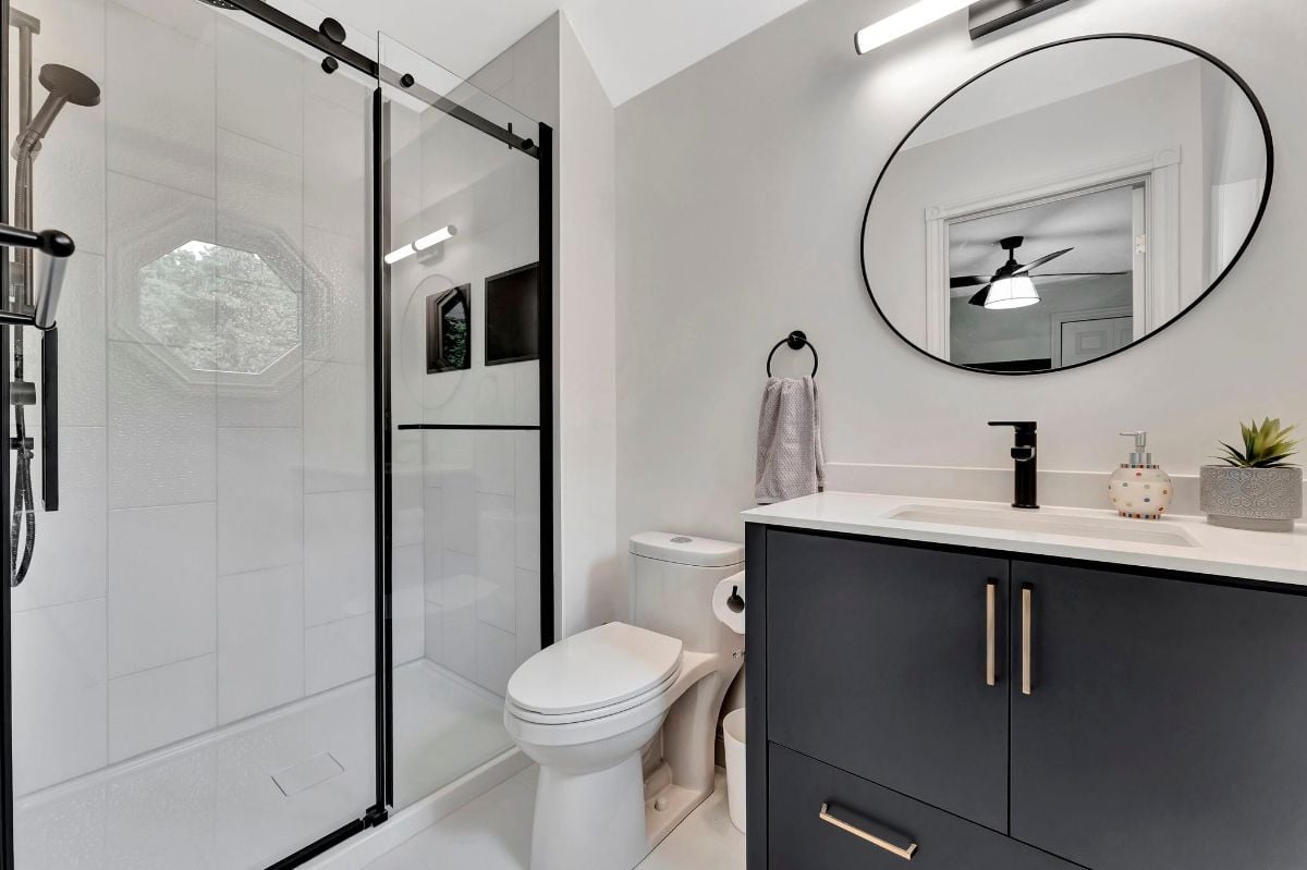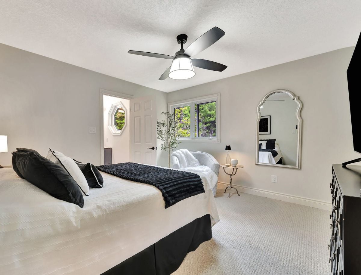 Reconfiguration of bedroom layout to create a spacious primary suite with ensuite bath.