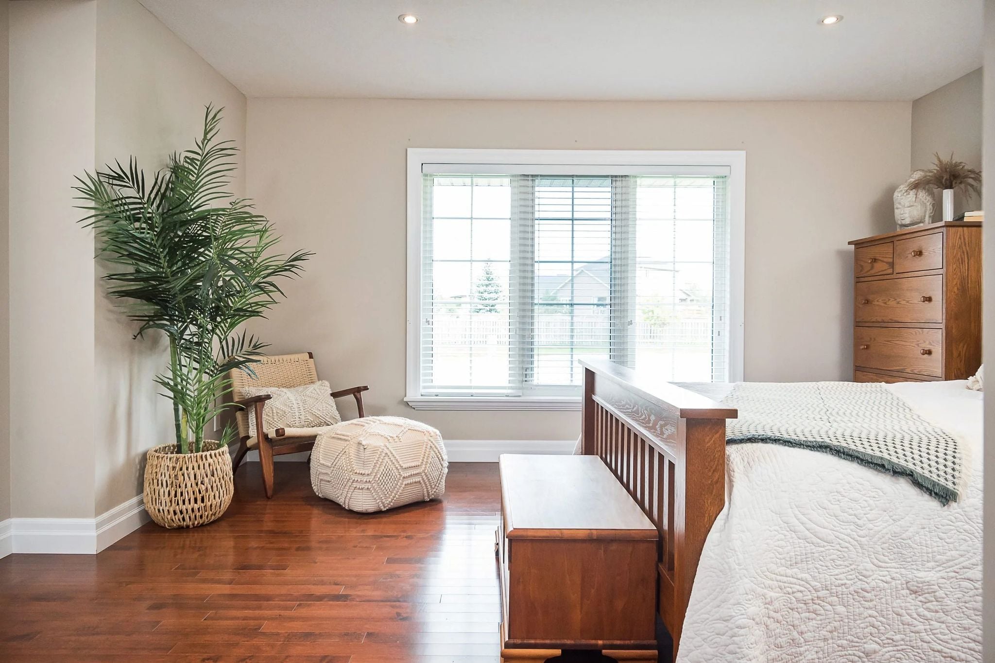 Hardwood floors grace the entire main level, adding warmth and elegance to every room. The primary bedroom is a sanctuary with its bright and airy atmosphere, thanks to the large east-facing windows. This retreat features a 5-piece ensuite bathroom and a spacious walk-in closet.