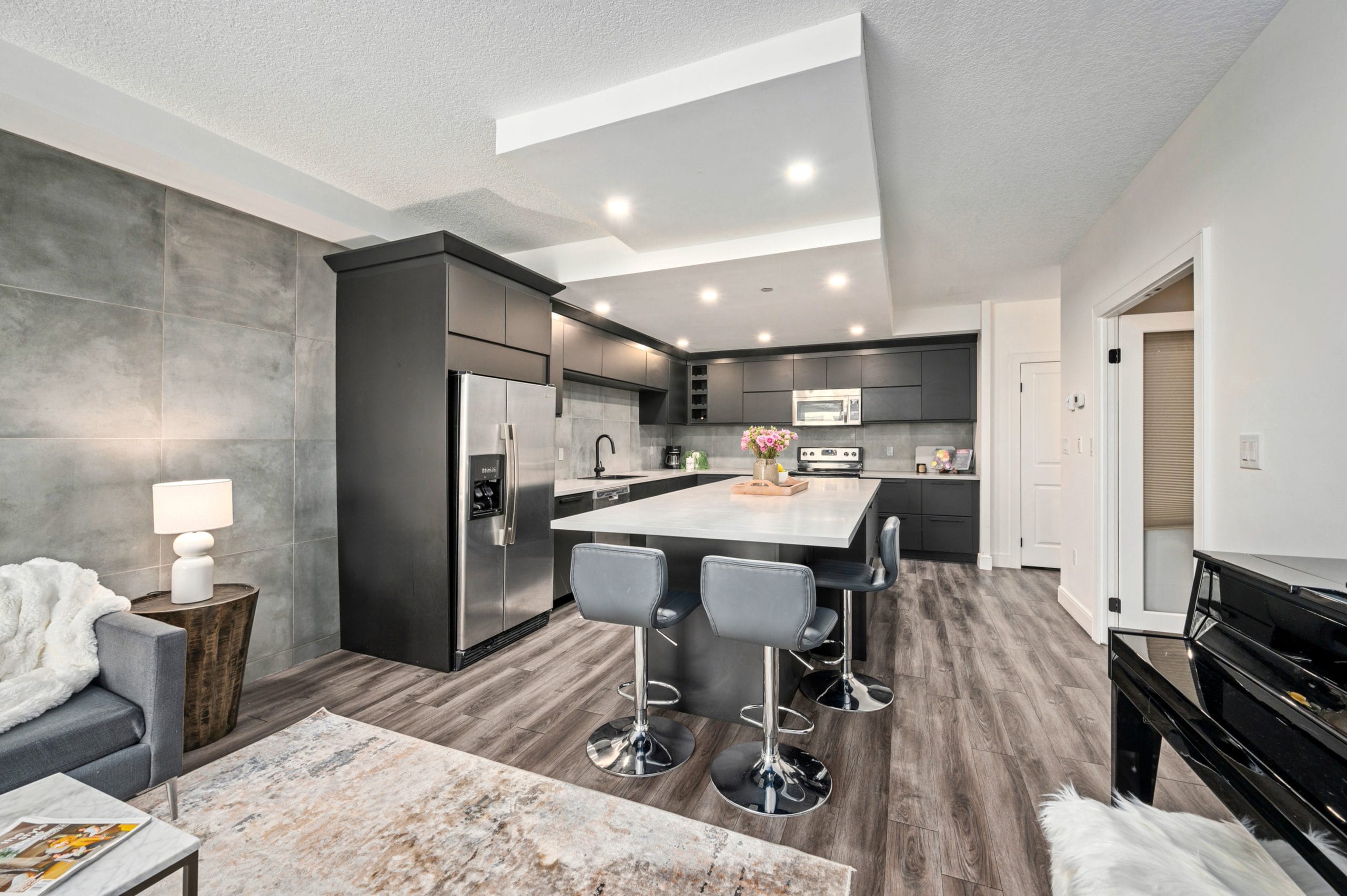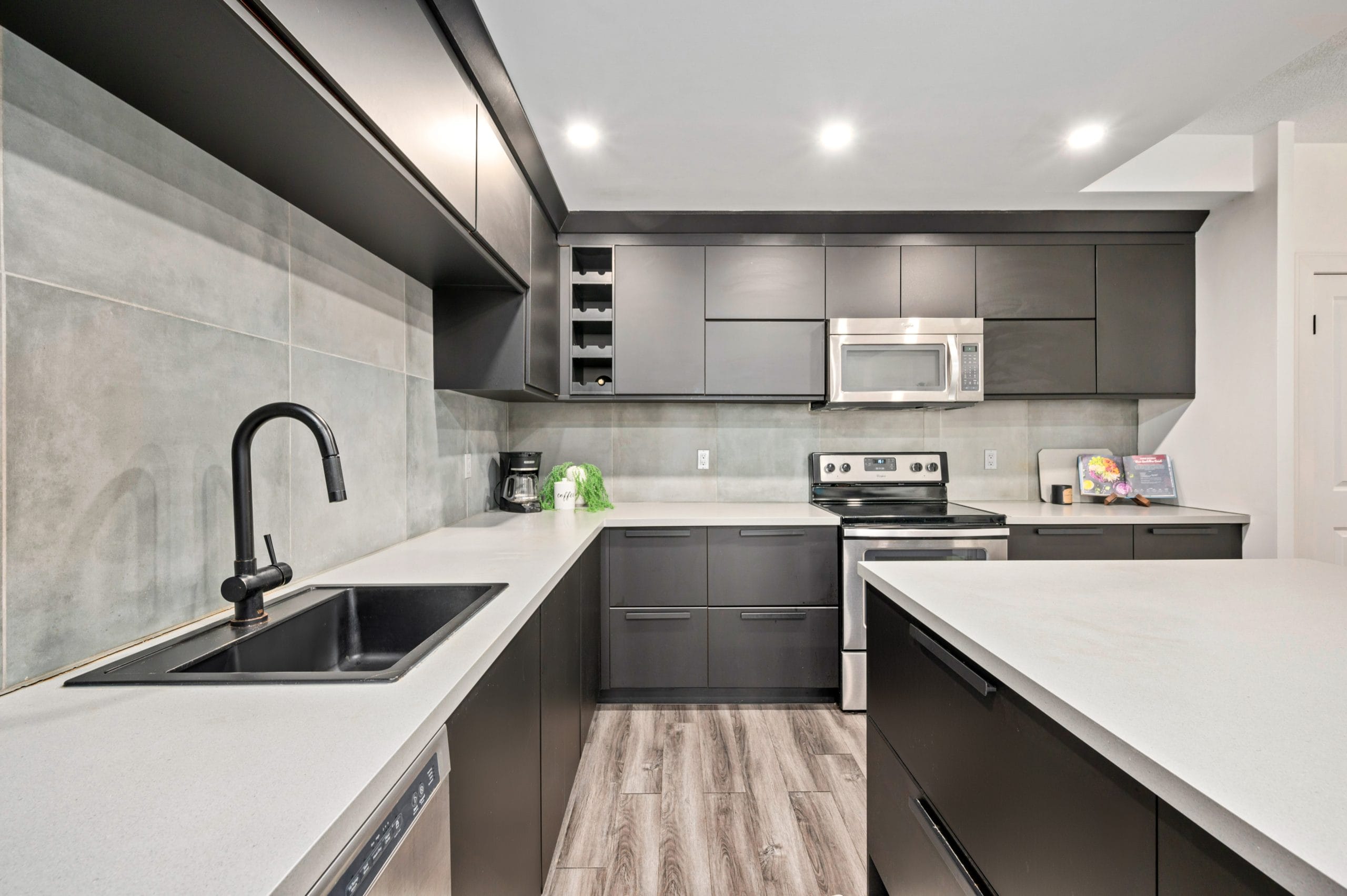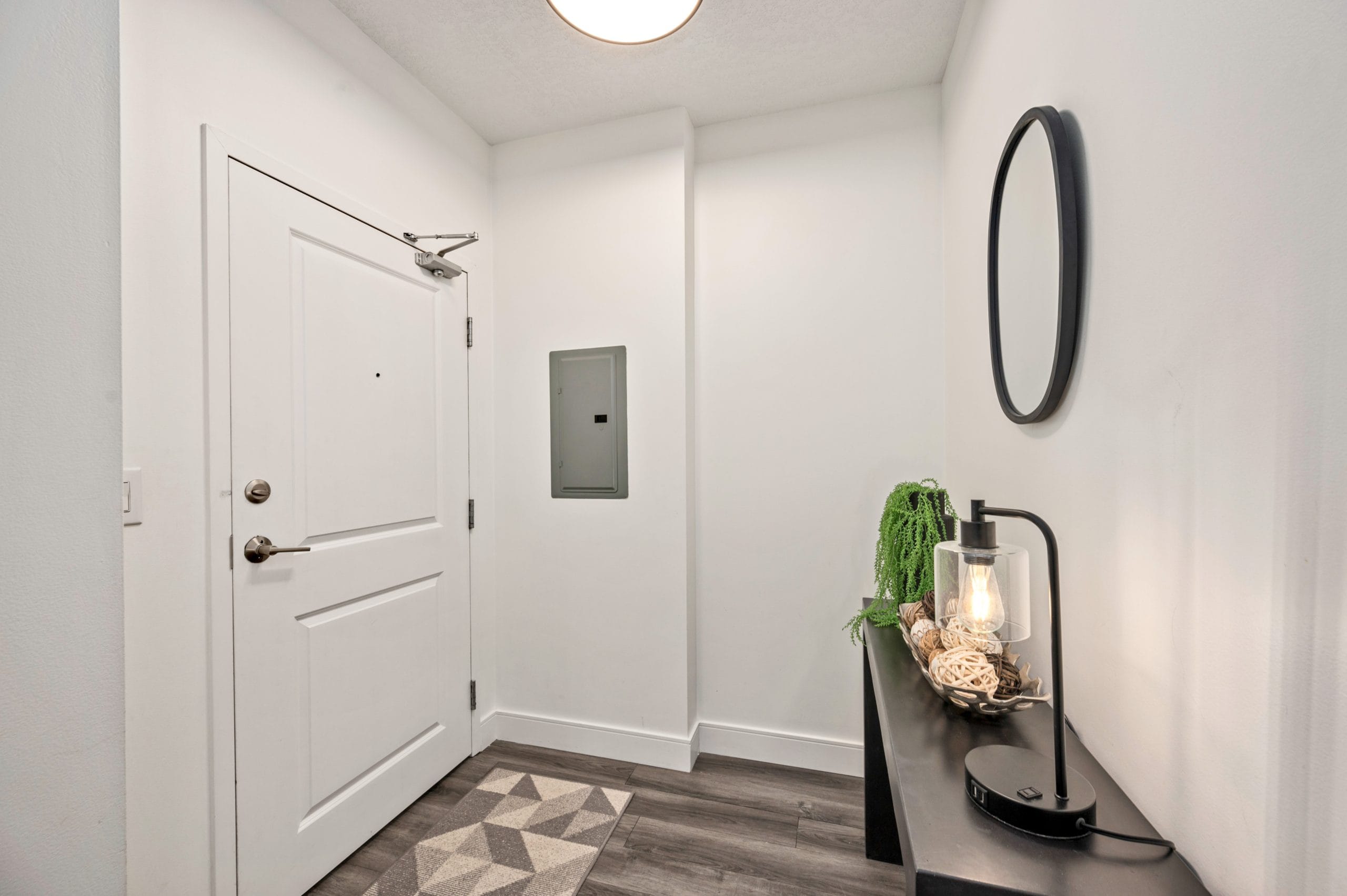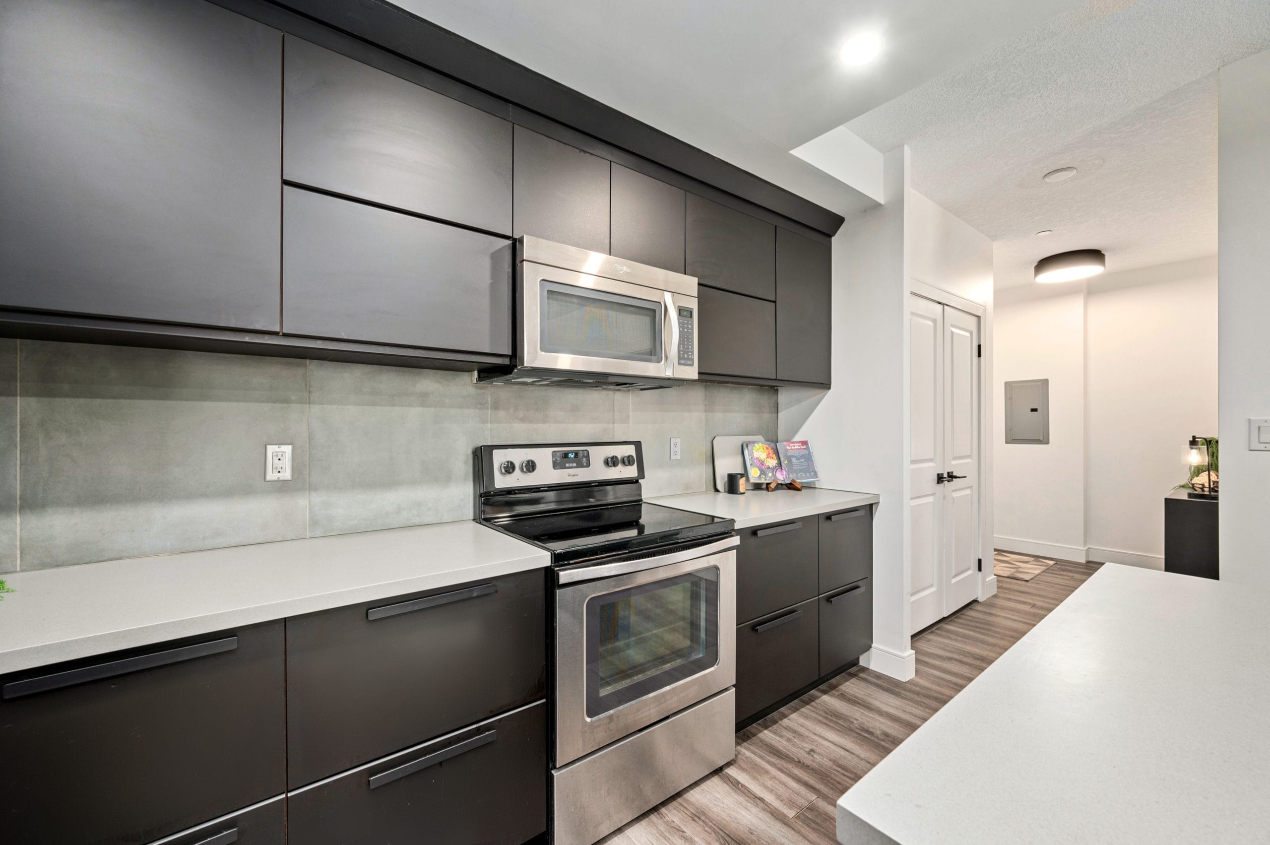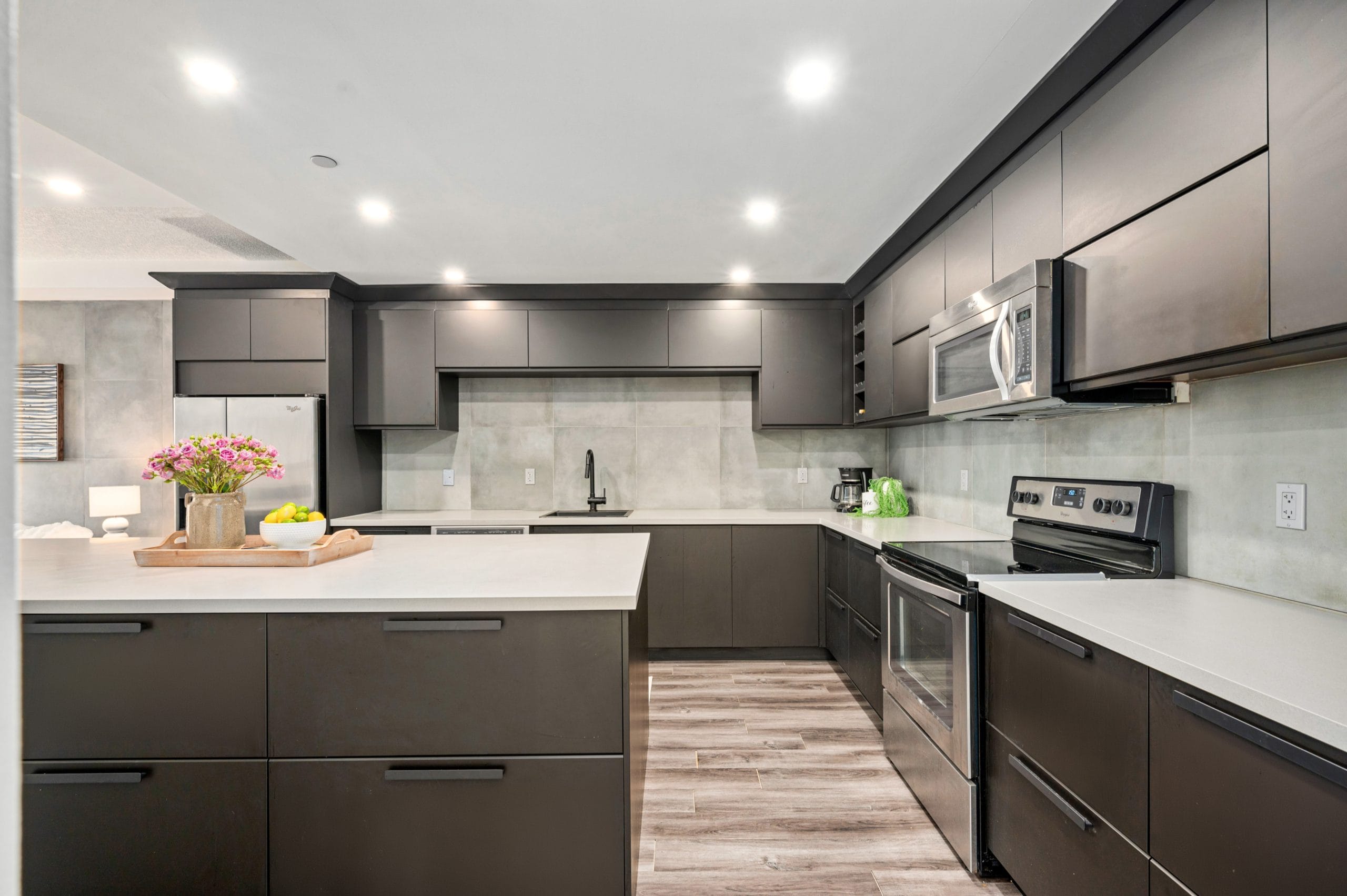 The thoughtfully designed suite has undergone a full renovation in 2017. This renovation features a high-quality, newly updated kitchen with ample cabinetry, gleaming countertops, kitchen backsplash that carries into the living room, stainless steel appliances, and a large breakfast bar that opens to the living and dining areas. All flooring throughout the unit has been replaced with luxury vinyl planks, and the bathroom has undergone a full renovation including new fixtures, vanity, wall and shower tile, shower doors, and floor tiles. Plus, the entire unit boasts updated lighting throughout!