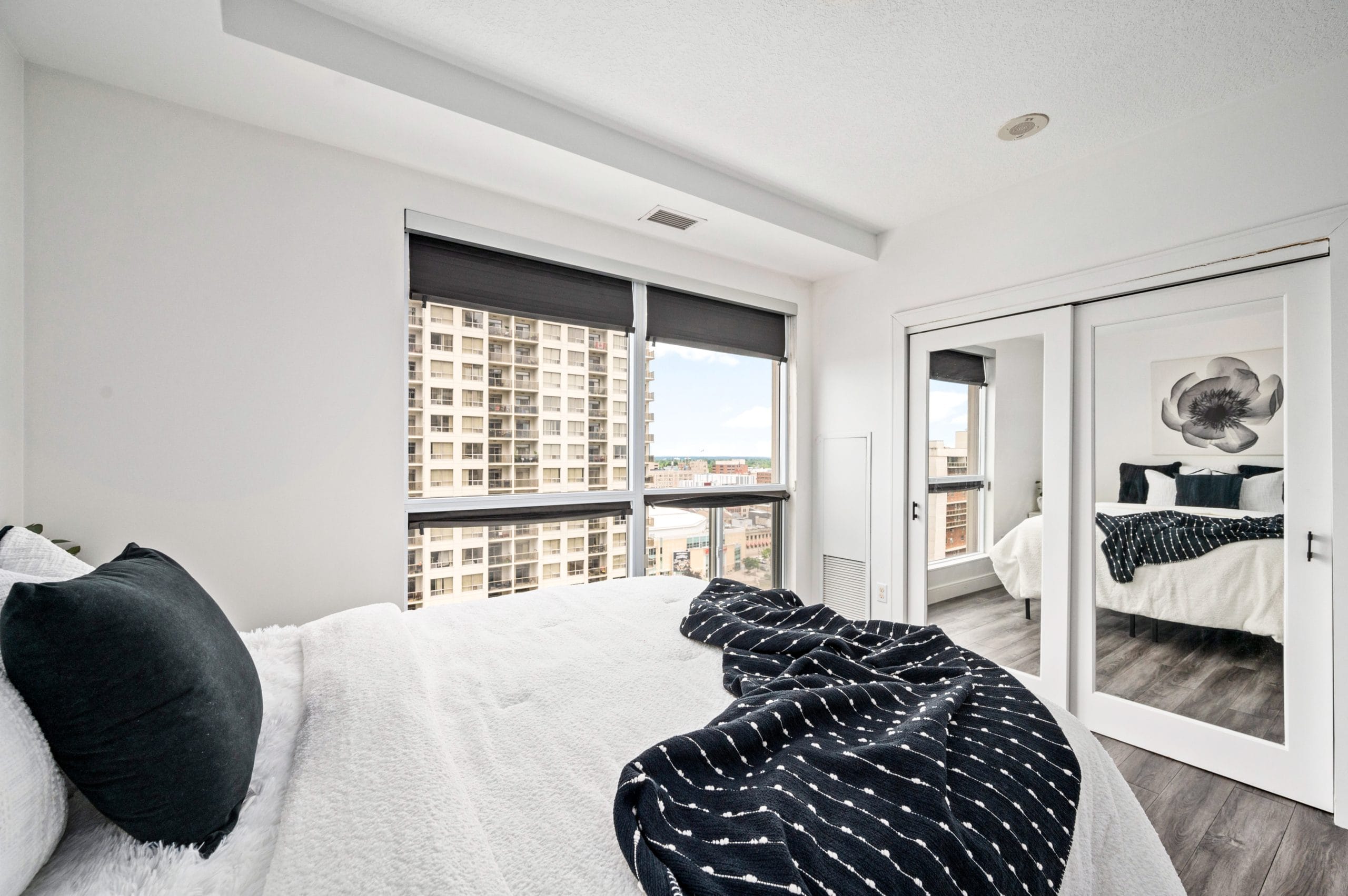 Immerse yourself in downtown living at Renaissance II! This bright and spacious, fully renovated 1-bedroom plus den unit boasts an ideal 17th-floor corner location, offering tranquility away from elevator traffic.