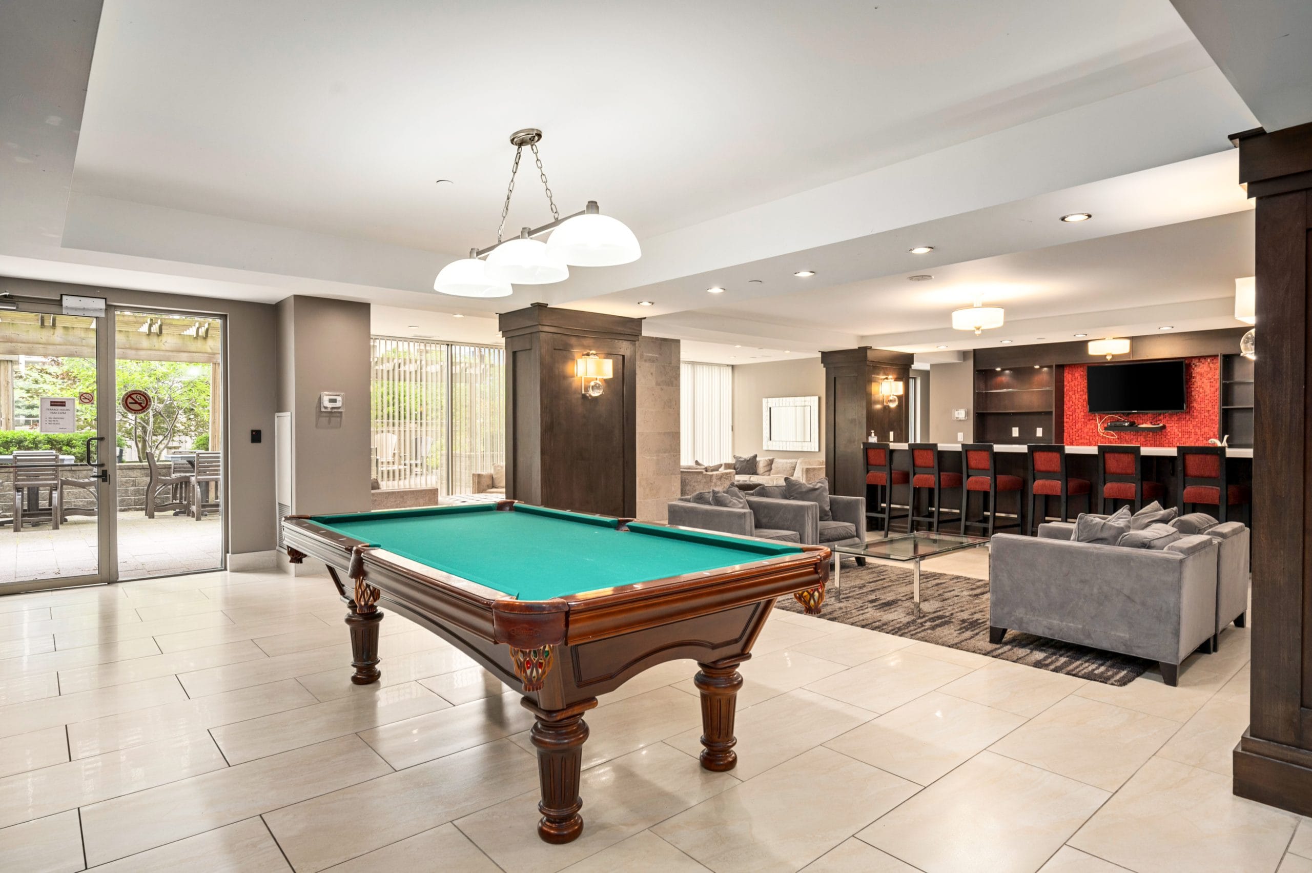 | Recreation: | Building Amenities: well-equipped gym, an amazing rooftop terrace with a putting green, fire pits, and BBQs, a large party room with a pool table, bar, kitchenette, and dining area, as well as a library, a theater room, and two guest suites. |