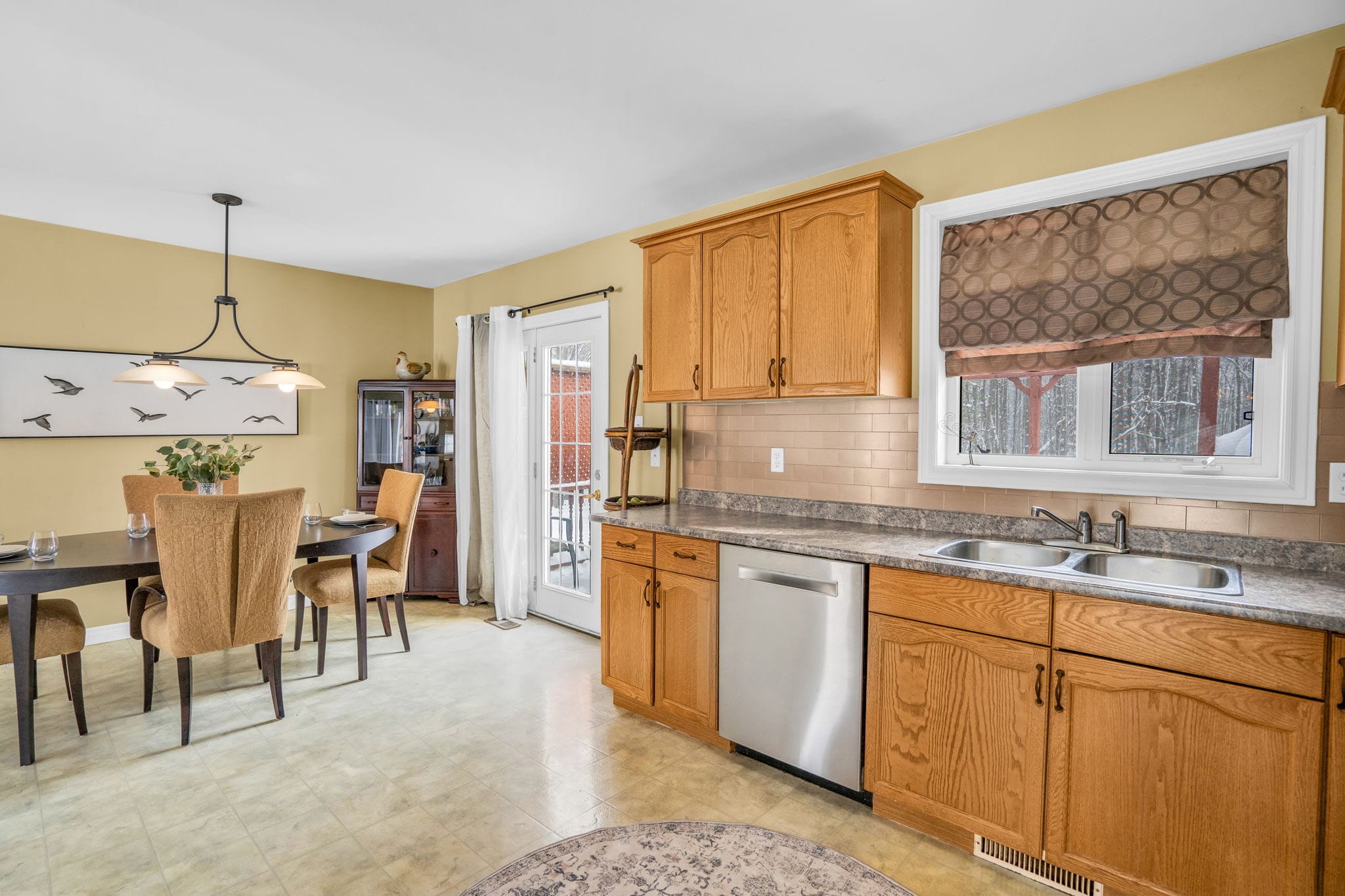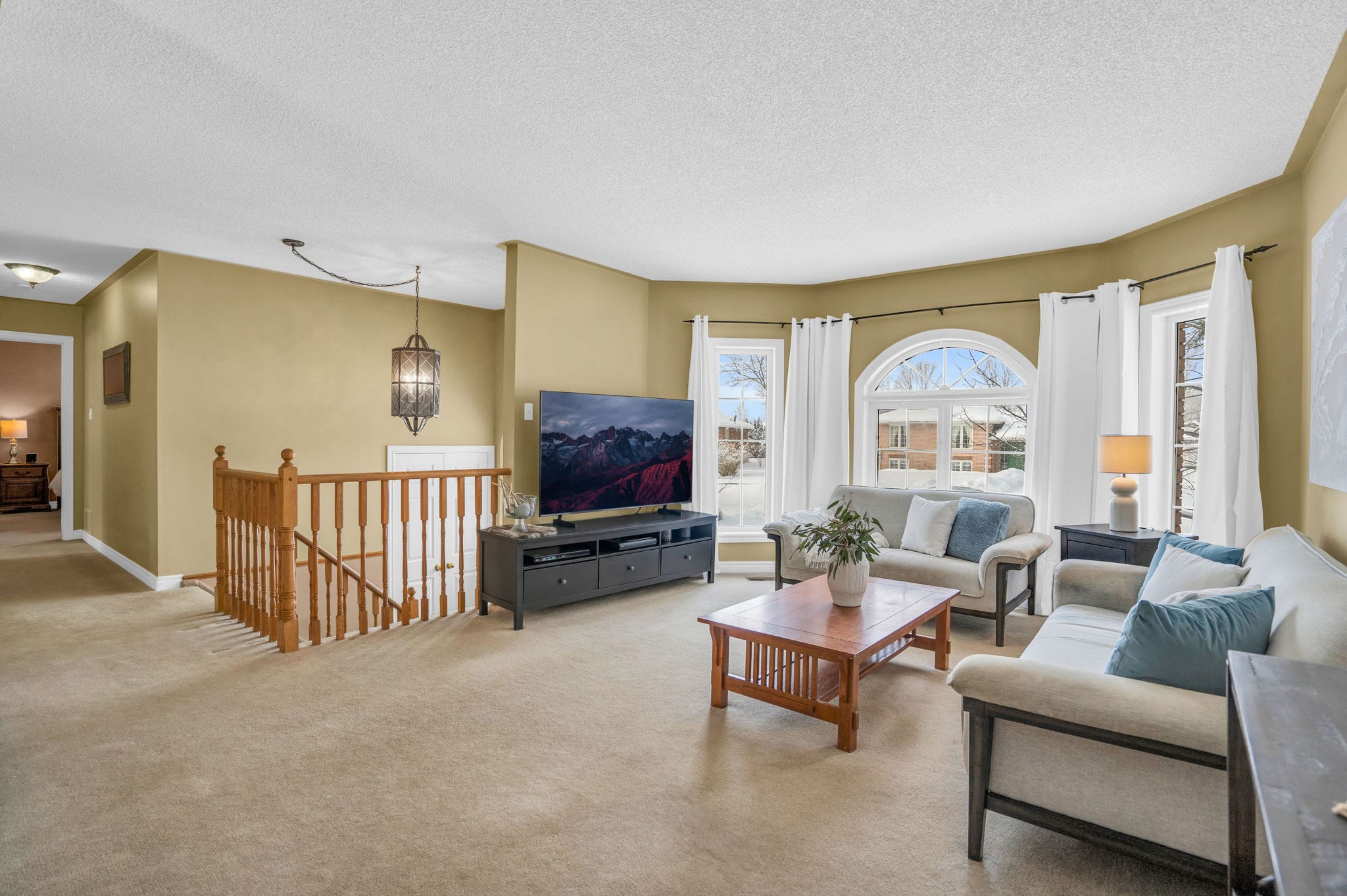 Inside, the main level is bright and inviting, featuring two well-sized bedrooms. The primary suite includes a 3-piece ensuite, while the second bedroom is conveniently located next to a 4-piece bathroom, making it ideal for family or guests. The open-concept living and dining areas offer a seamless flow, with large windows that bring in plenty of natural light and beautiful views of the backyard and woods.
