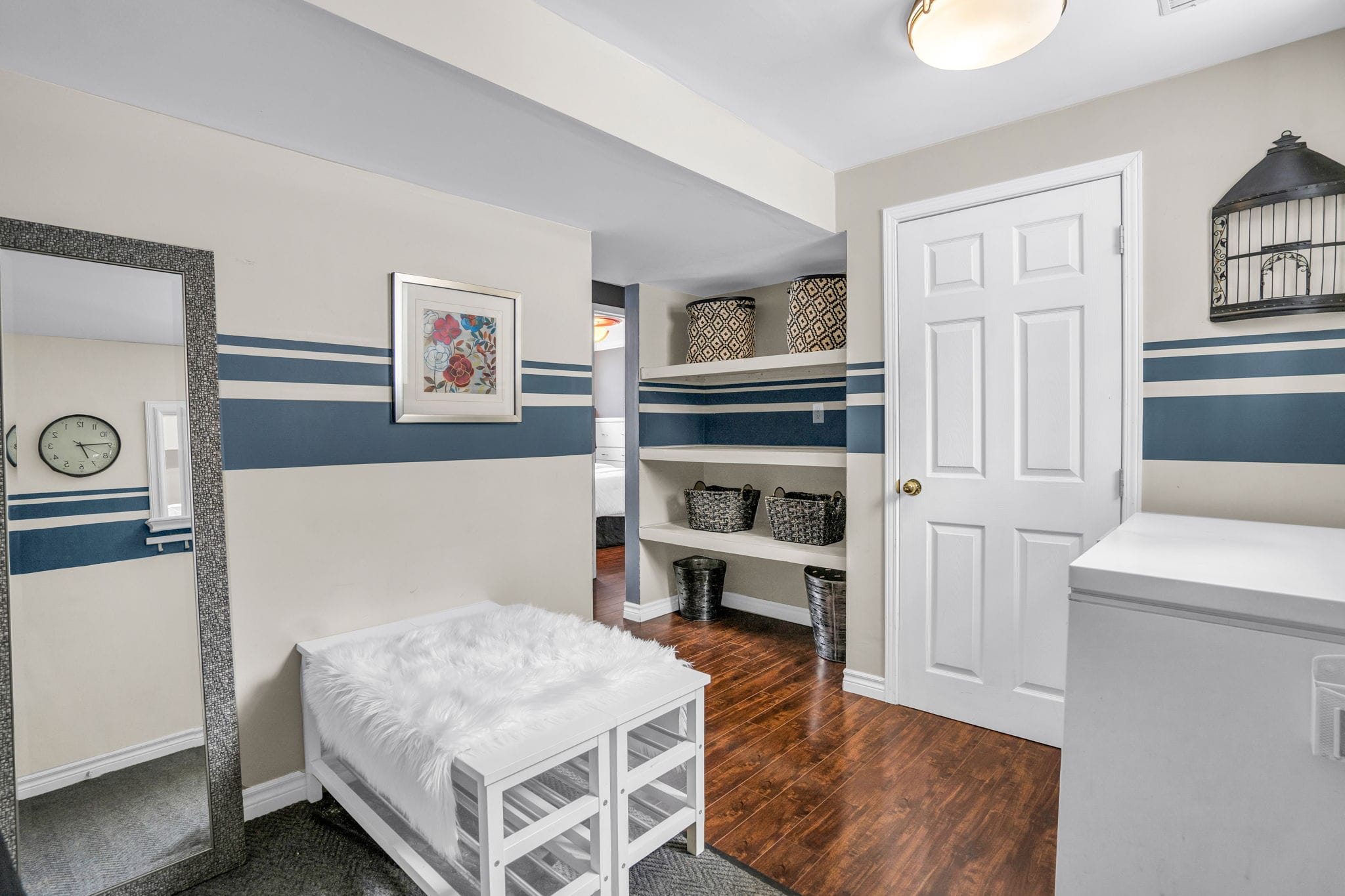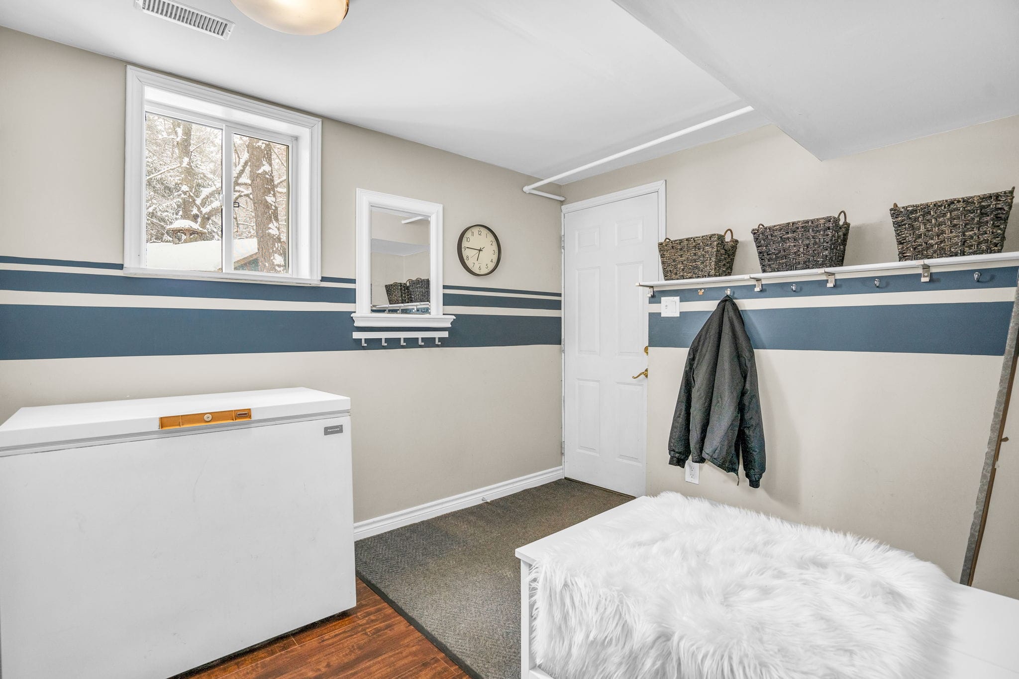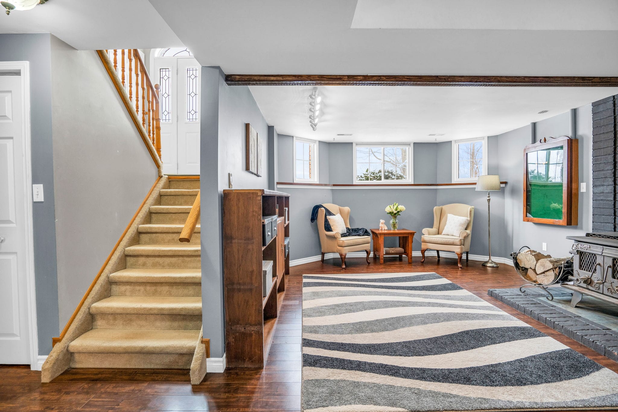 The fully finished lower level extends the living space, providing incredible versatility. It features two additional bedrooms, an updated 3-piece bathroom, and a spacious rec room. This level also includes a separate walk-up entrance through a boot room, leading directly into the oversized 3-car garage. With its layout and private access, the lower level offers great potential for an in-law suite.