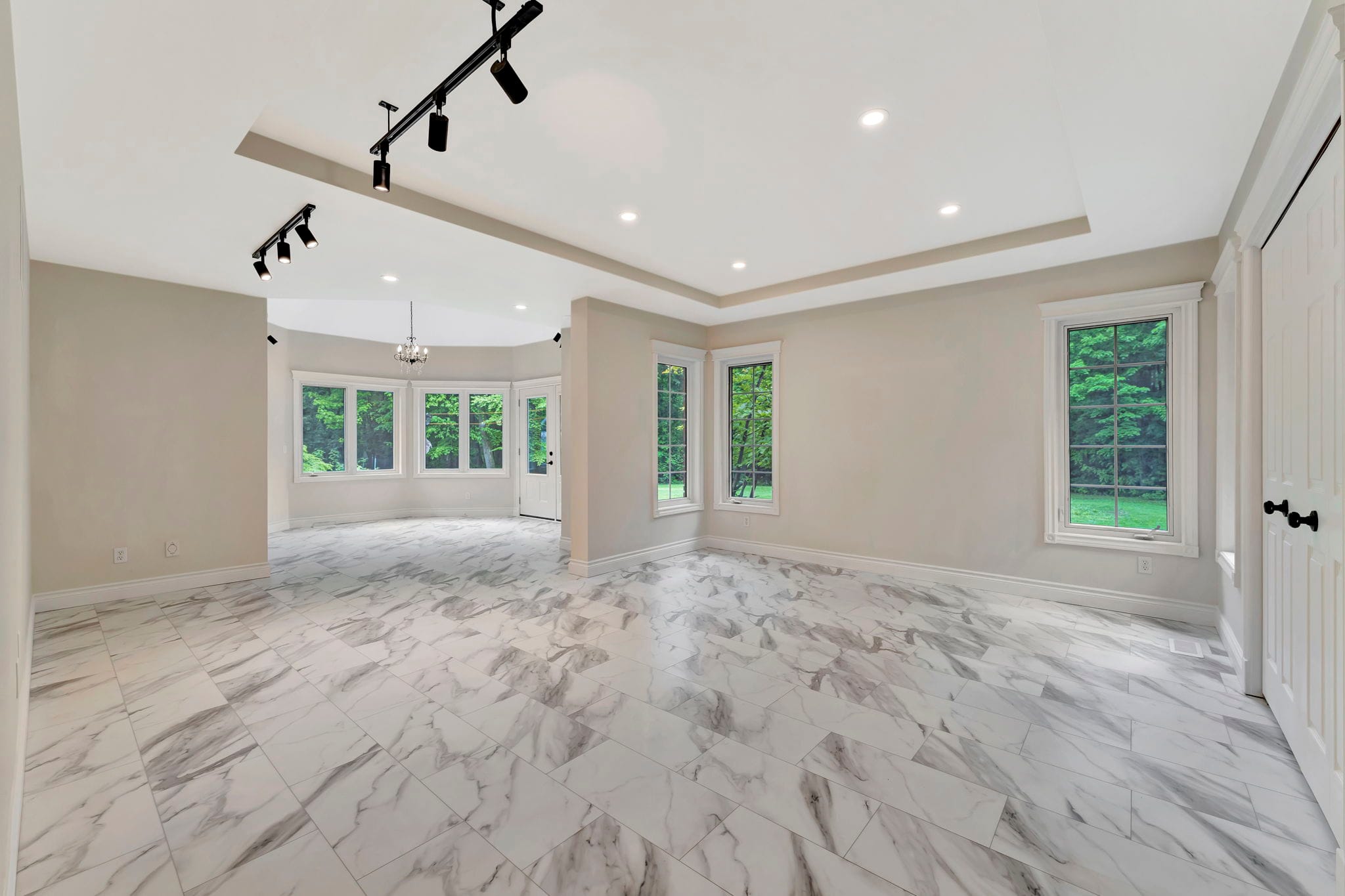 | Interior: | Inside, the home showcases timeless craftsmanship and elegant finishes. The grand living and family rooms are enhanced by soaring vaulted ceilings and a dramatic double maple staircase, while a cozy wood stove insert anchors the family room’s striking fireplace. The chef-inspired kitchen features Silestone countertops, a generous breakfast bar, updated appliances, and a bright solarium-style dining area. Additional highlights include a formal dining room, main floor laundry with custom built-ins, five spacious bedrooms, and six thoughtfully updated bathrooms. A sun-filled four-season sunroom leads seamlessly to the outdoor entertaining space, completing this warm and beautifully designed interior. |