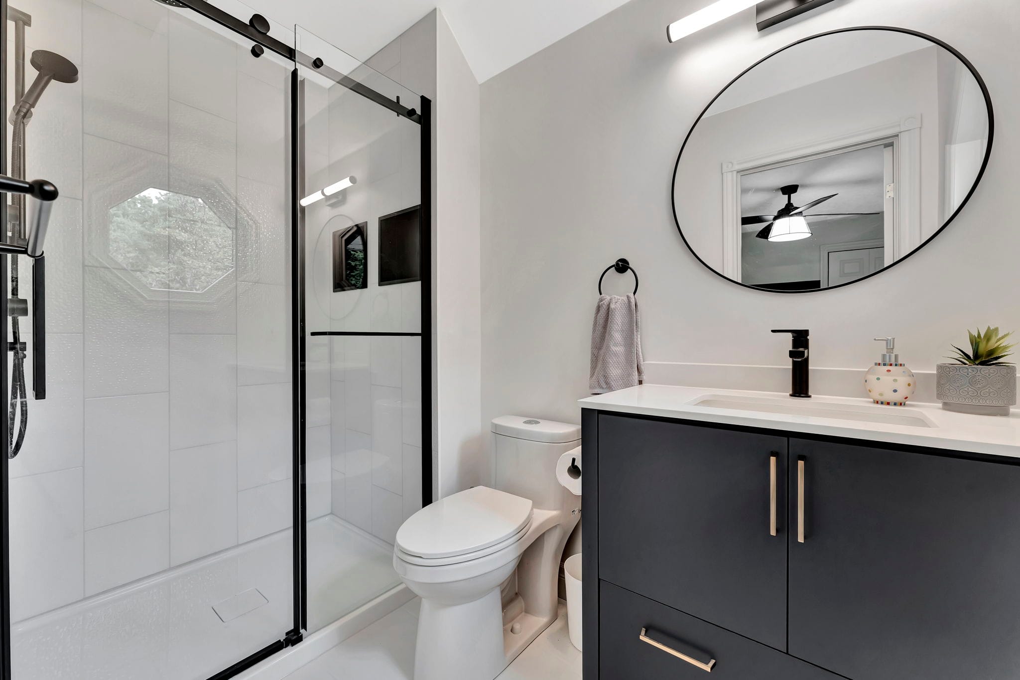 Five spacious bedrooms and six beautifully updated bathrooms provide ample space for family and guests. The bright sunroom opens directly onto a sprawling deck, leading to a private backyard oasis with a stamped concrete patio, lush gardens, and an in-ground saltwater pool—perfect for relaxing or entertaining.