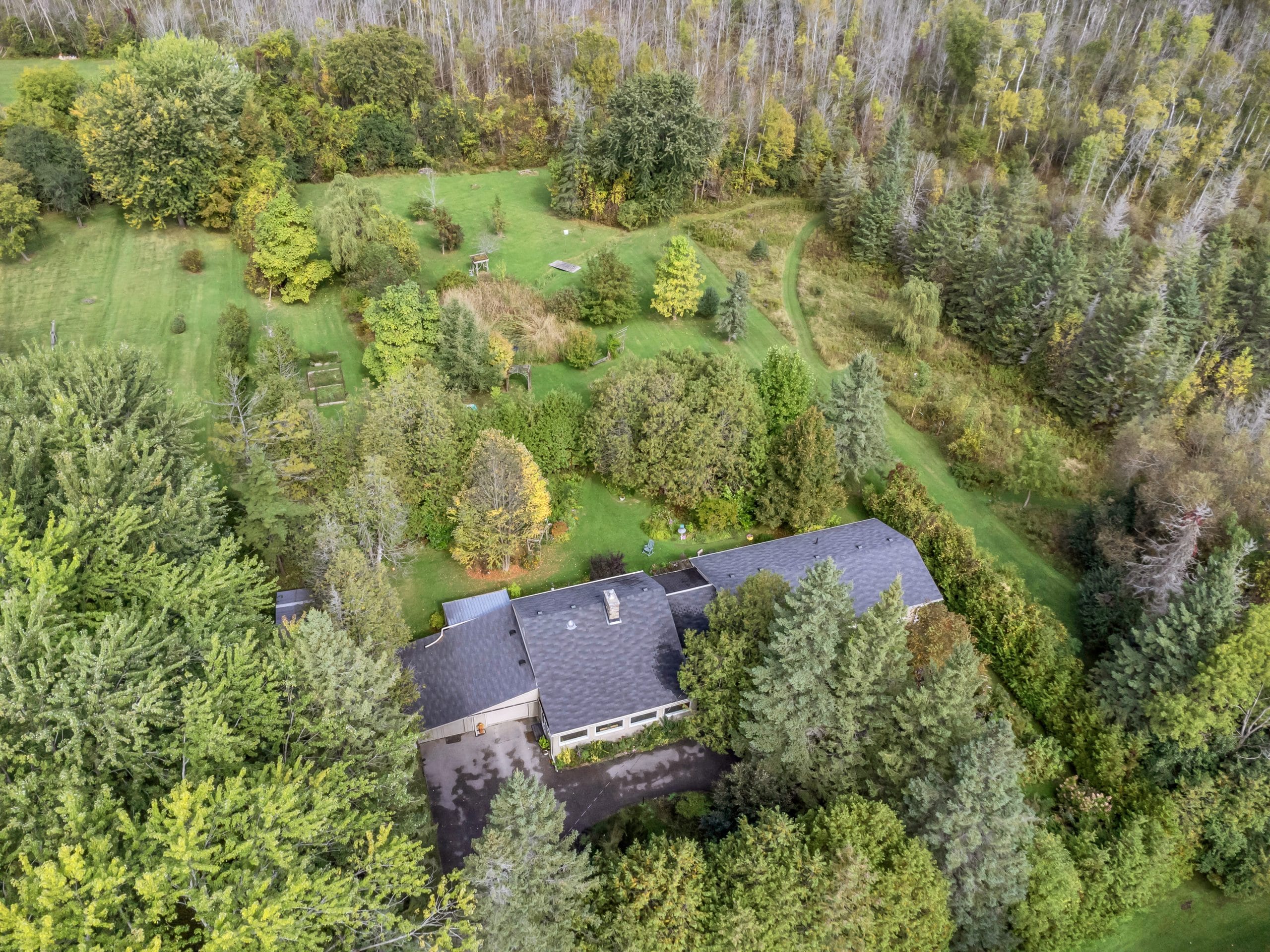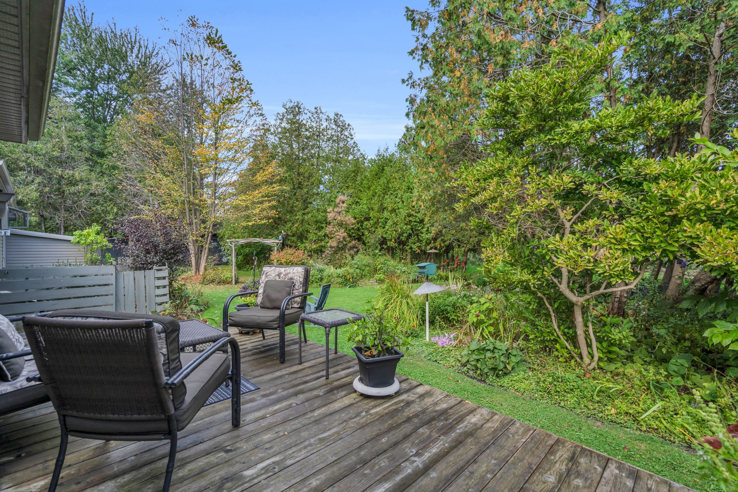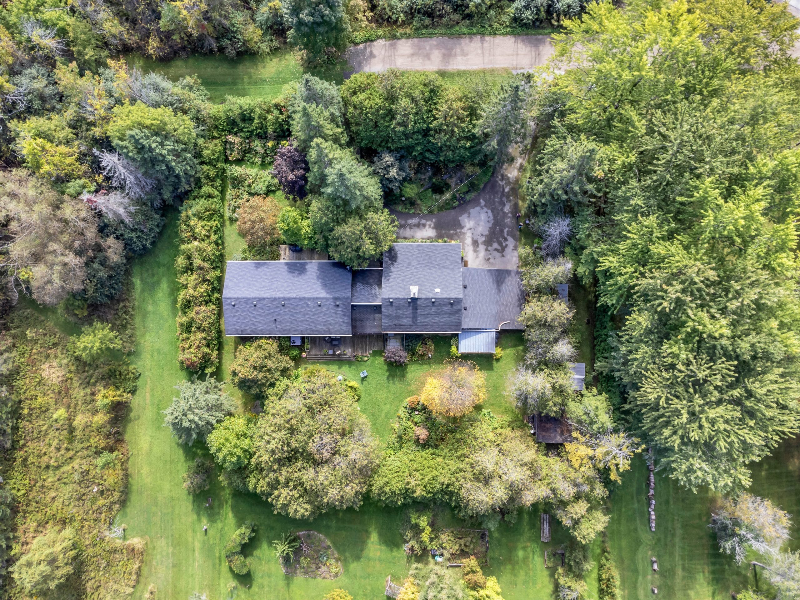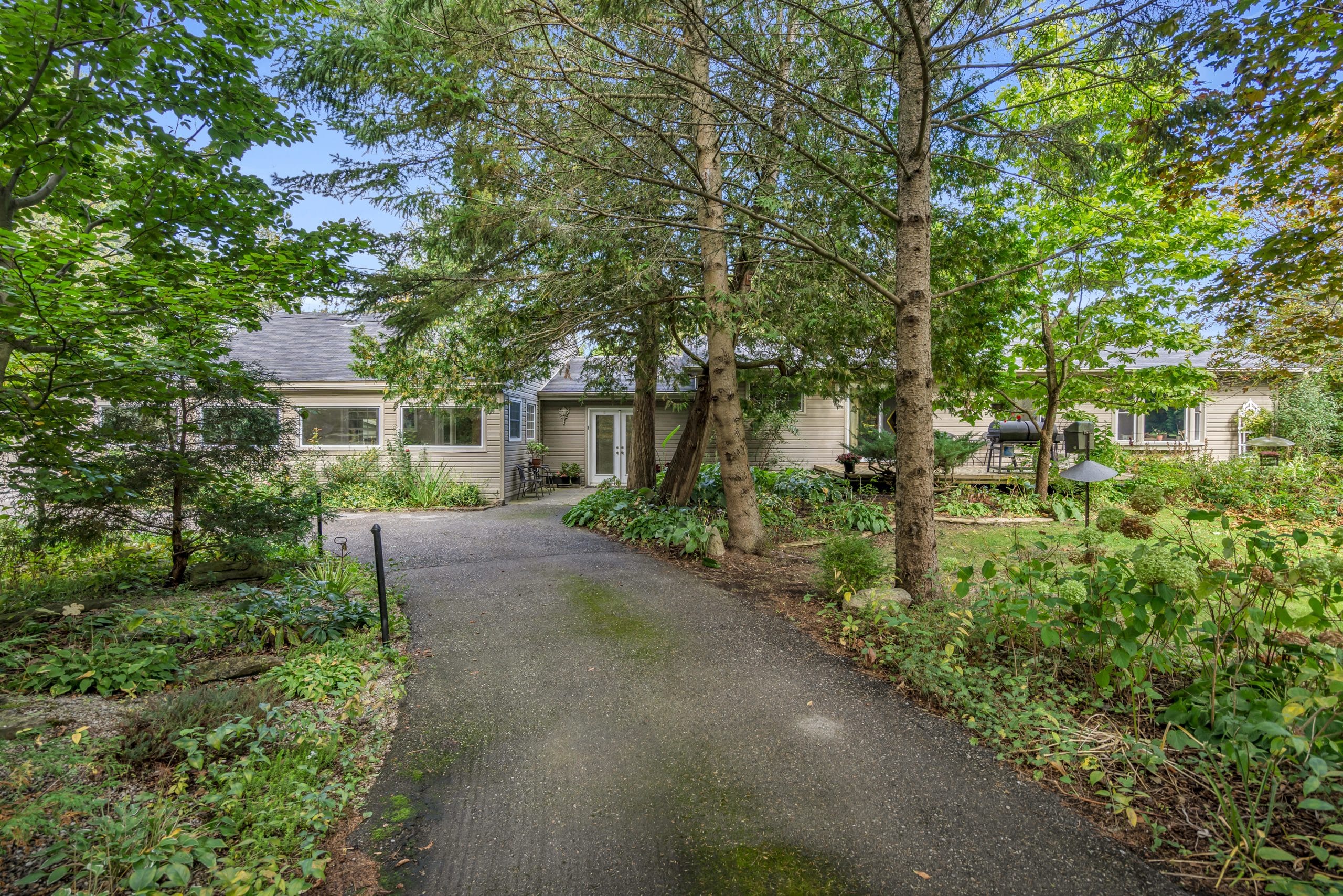 | Scenery: | With over 3 acres of pristine forest backing onto greenspace, this home is an idyllic retreat for those seeking seclusion and tranquility. The property itself has meticulously maintained property with perennial gardens, mature trees, and floral shrubs. |