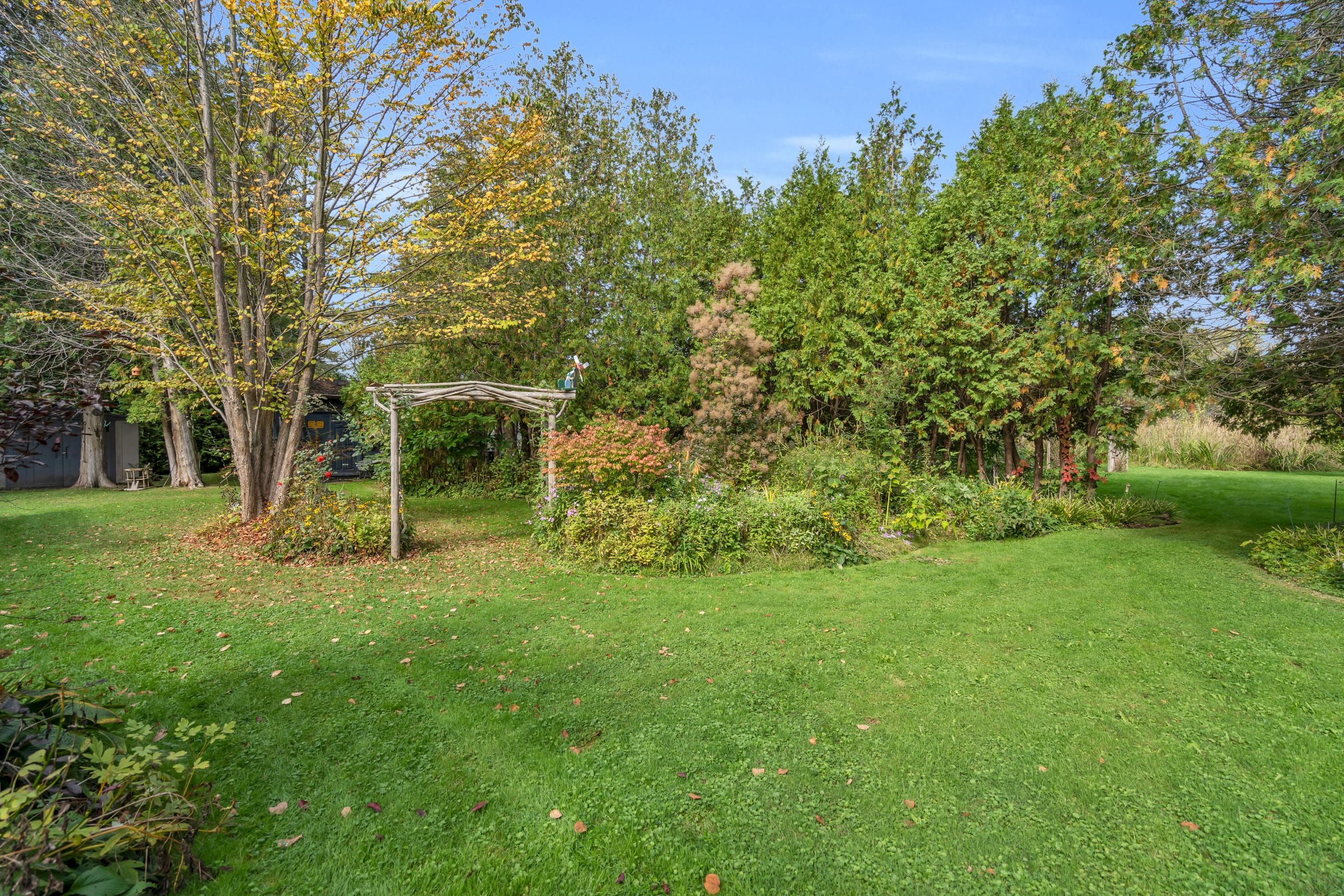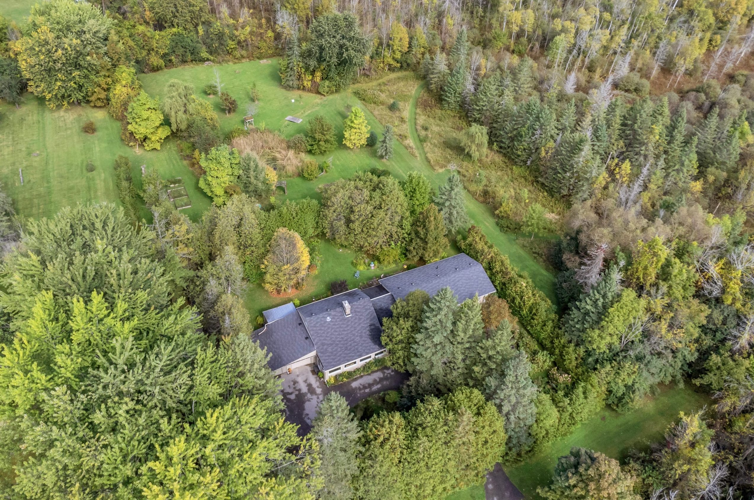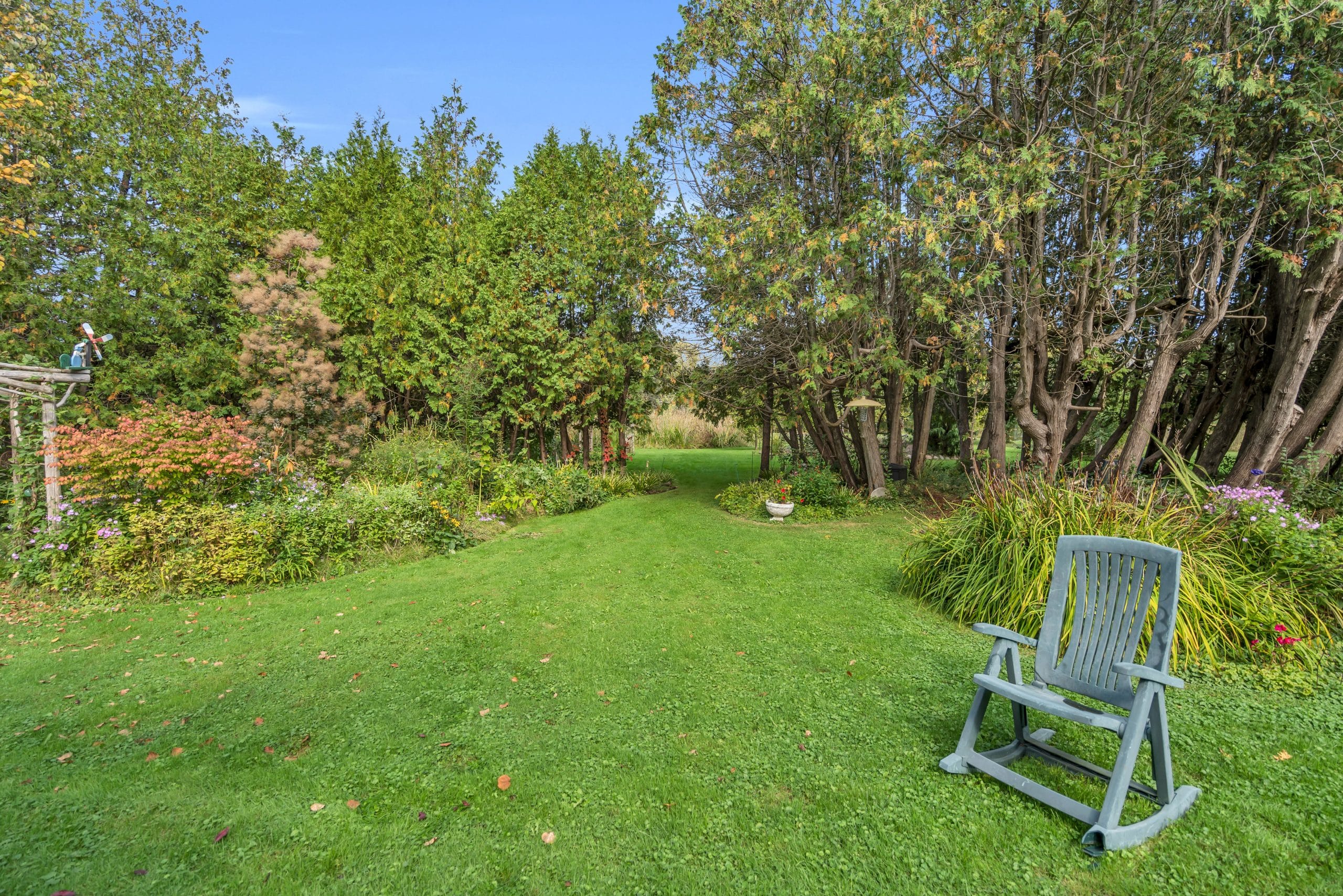 | Scenery: | With over 3 acres of pristine forest backing onto greenspace, this home is an idyllic retreat for those seeking seclusion and tranquility. The property itself has meticulously maintained property with perennial gardens, mature trees, and floral shrubs. |