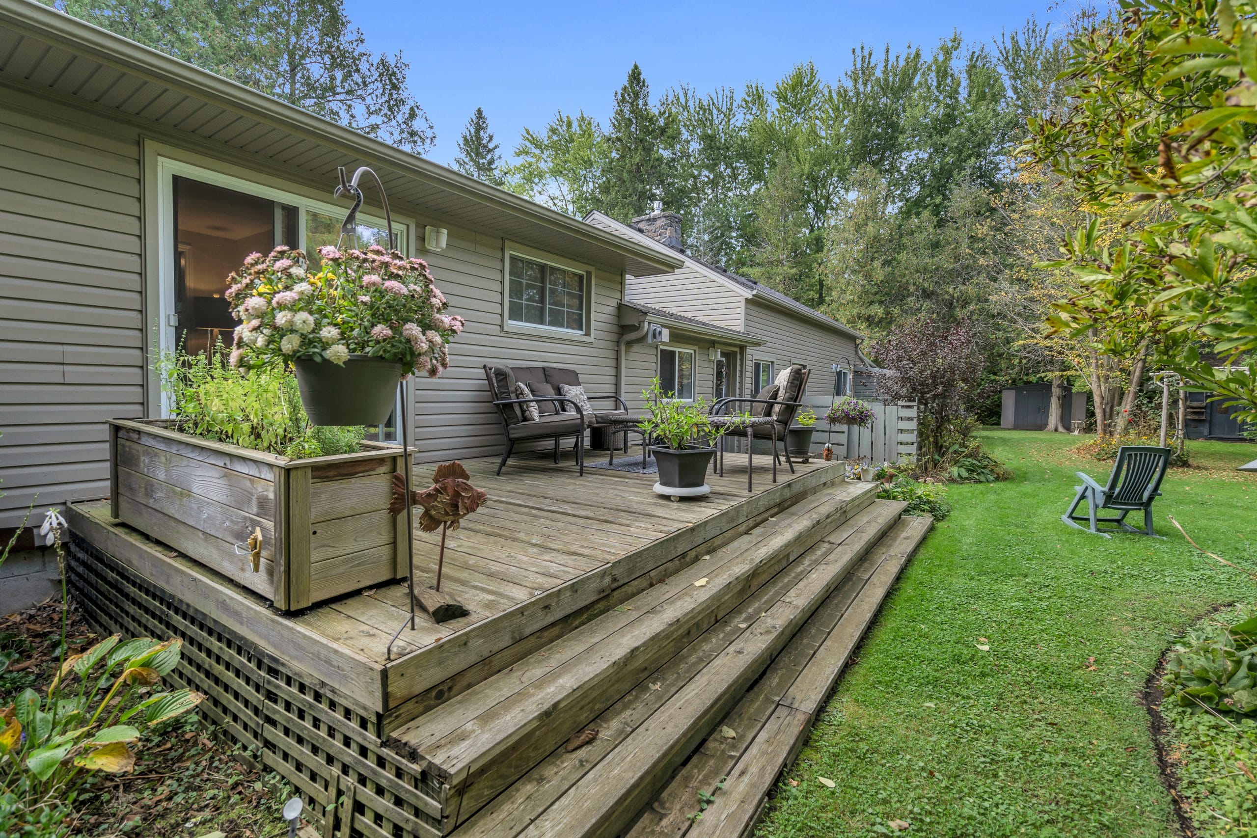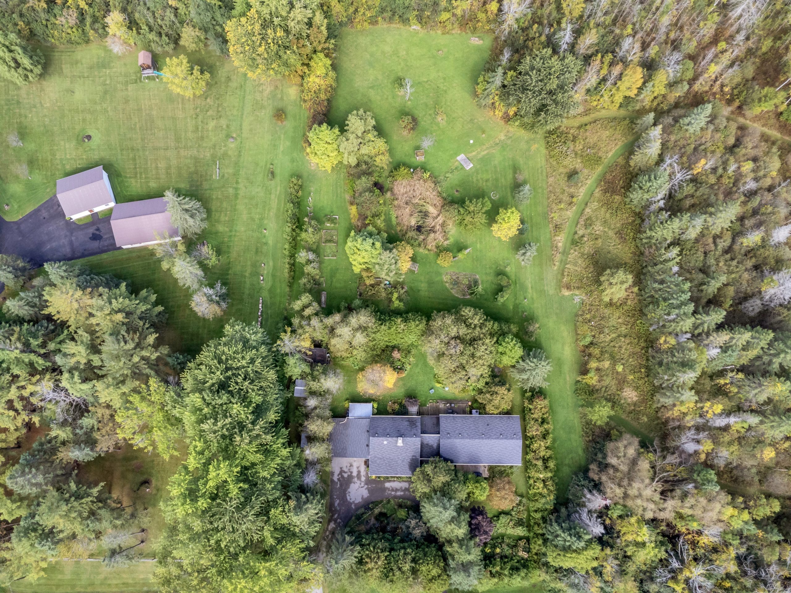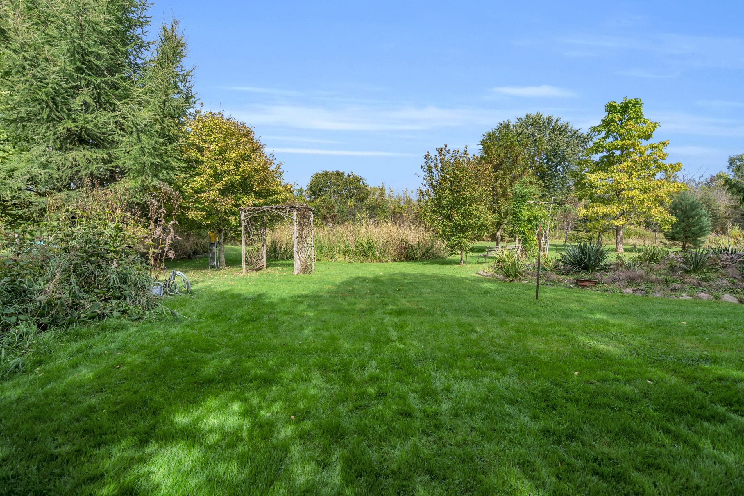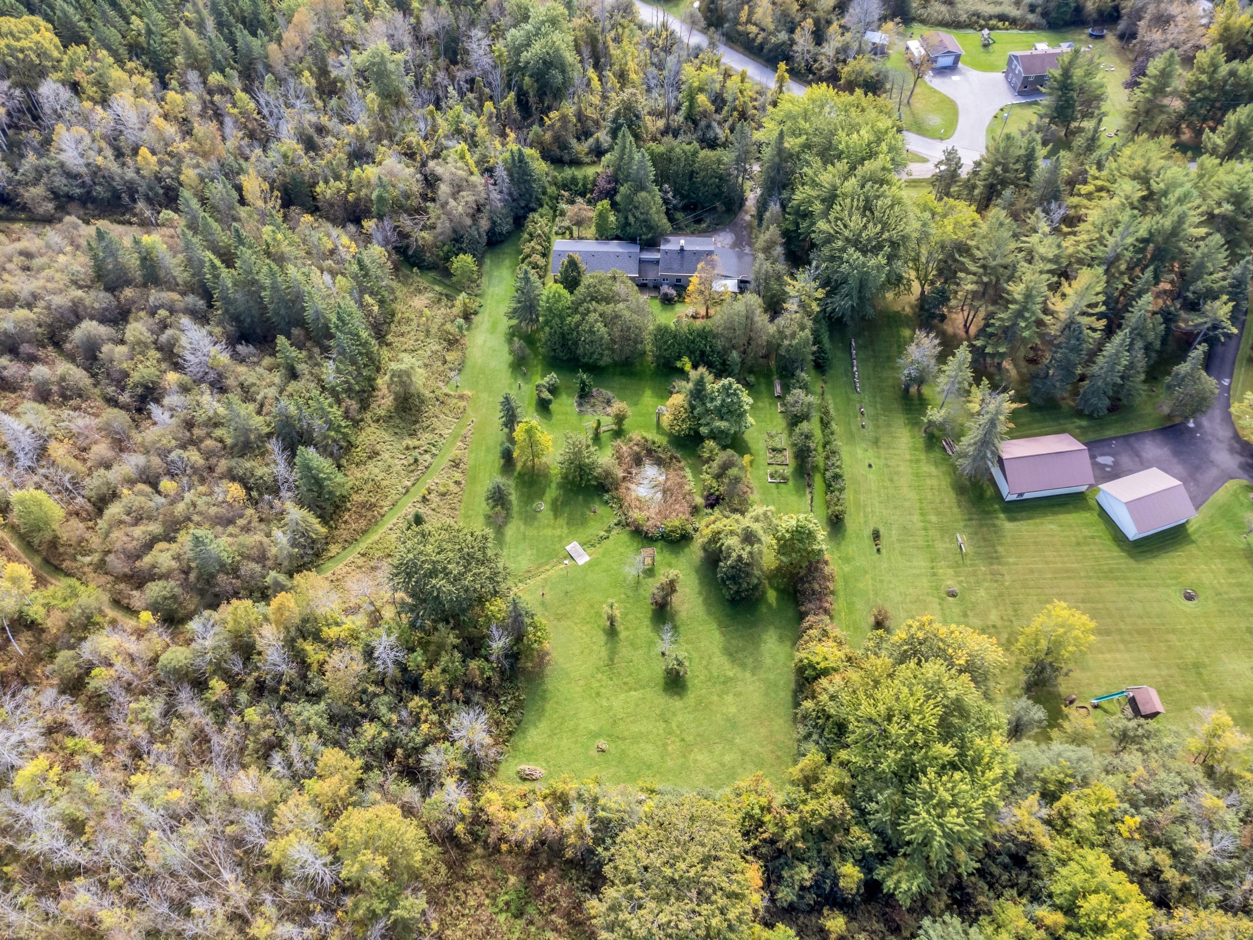 | Scenery: | With over 3 acres of pristine forest backing onto greenspace, this home is an idyllic retreat for those seeking seclusion and tranquility. The property itself has meticulously maintained property with perennial gardens, mature trees, and floral shrubs. |