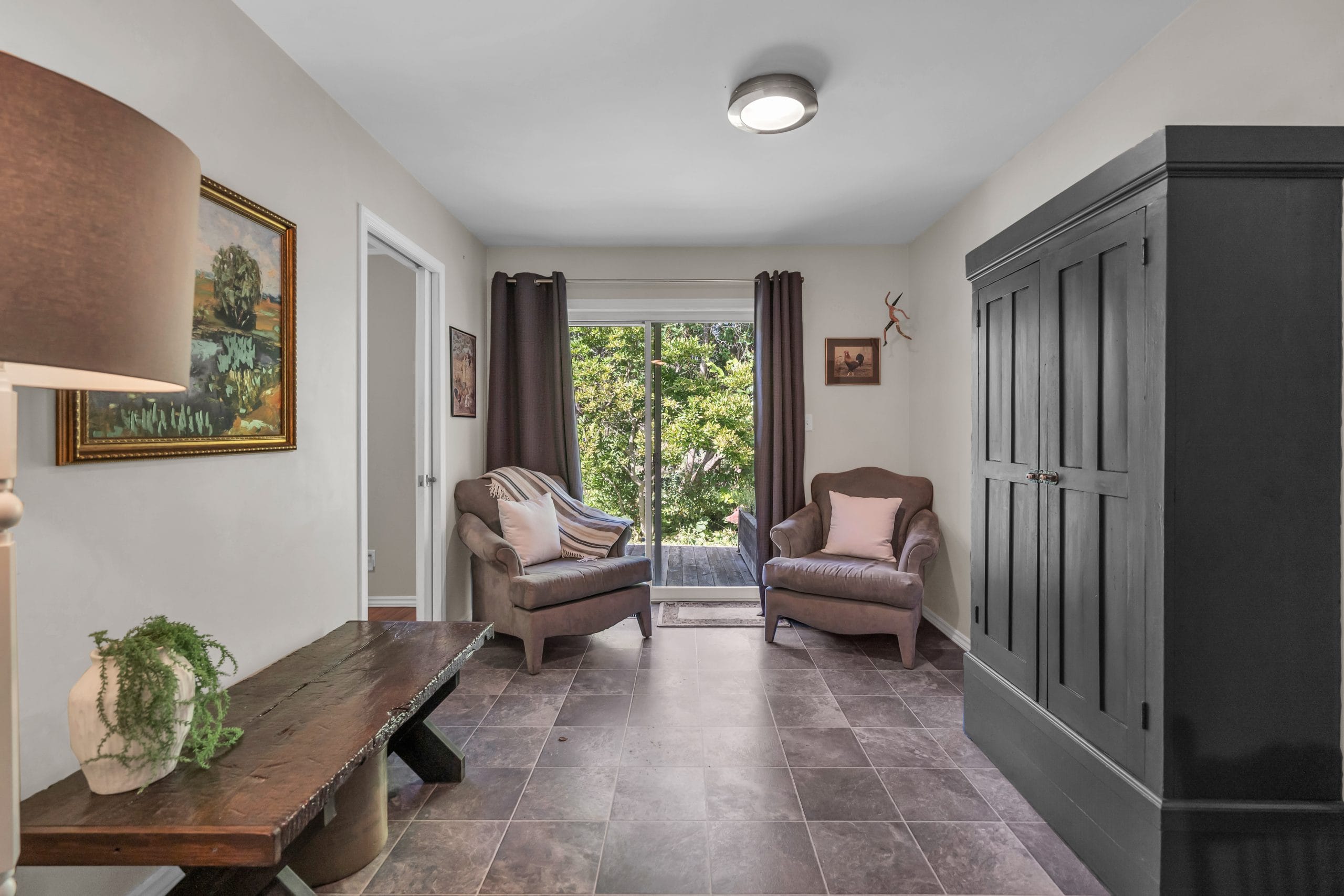 | Interior: | The expansive principal rooms, including a spacious family room, cozy den, and inviting living room, are ideal for entertaining family and friends. With three well-sized bedrooms and two bathrooms, there’s ample room for relaxation and comfort. |