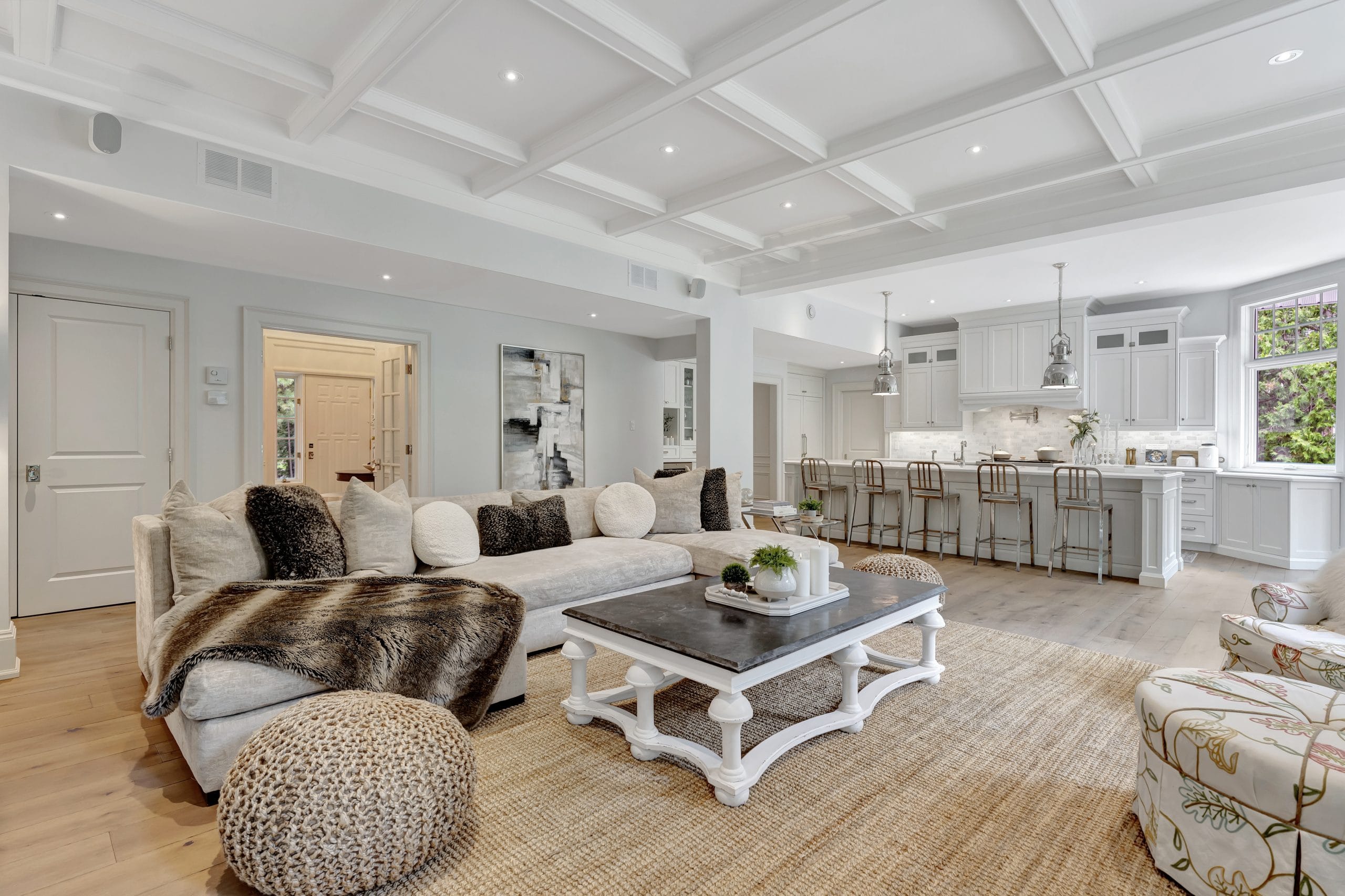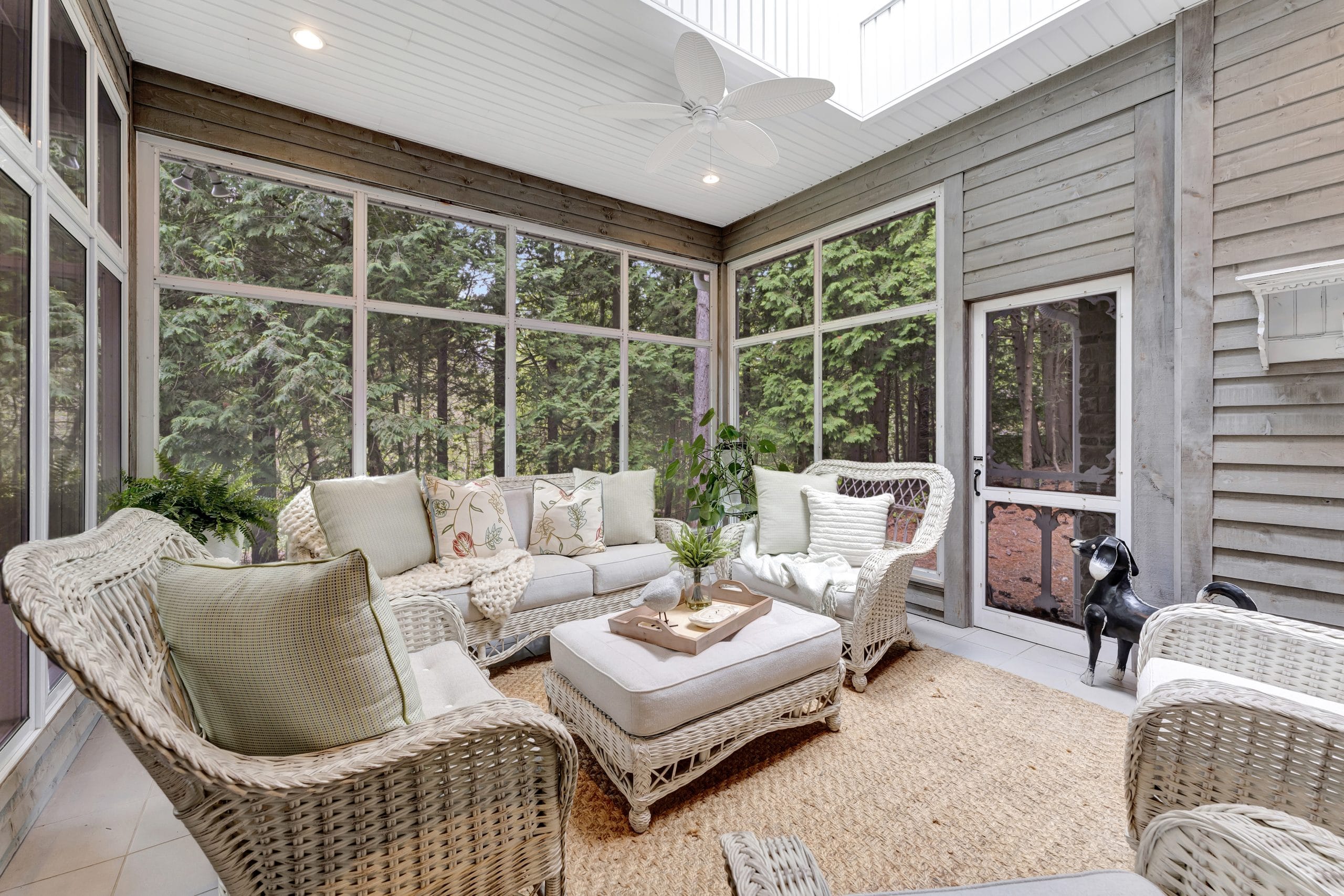 Construction:Superb craftsmanship, impeccable finishes, and meticulous attention to detail. The interior boasts a modern country style with a palette of neutral colors, whites, creams, and beiges, complemented by luxurious stone finishes in the kitchen and bathrooms. The expansive family room, with its tray ceiling and wide-plank hardwood floors & stunning floor-to-ceiling stone gas fireplace overlooks the Muskoka Room.