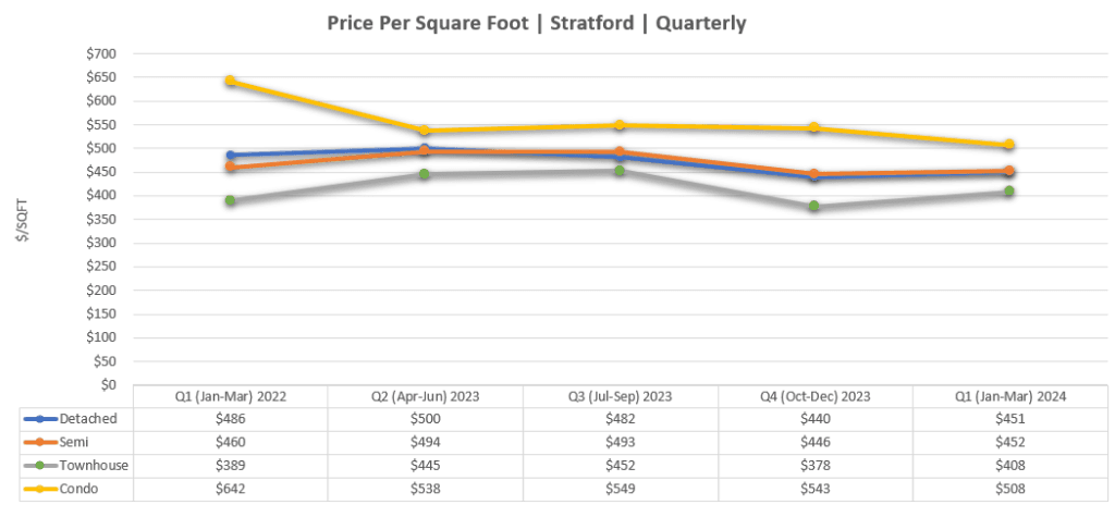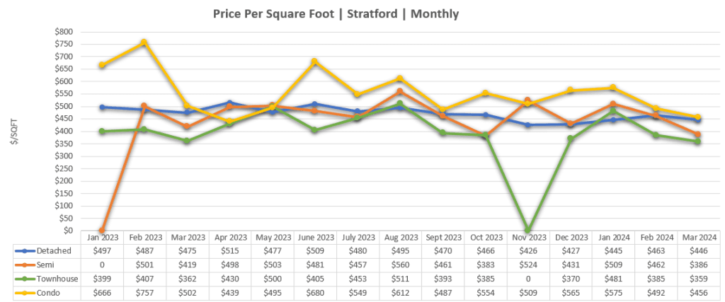 These trends suggest that buyers may have more leverage in negotiating prices and terms for semi-detached homes and condos. However, the overall Stratford real estate market remains relatively stable, with properties still in demand and available for purchase.